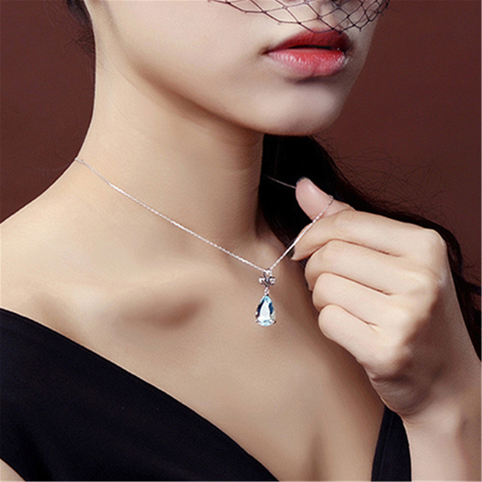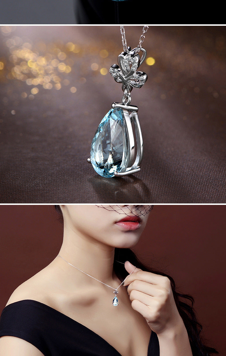 Color Sky Blue Topaz Crystal Clavicle Chain
