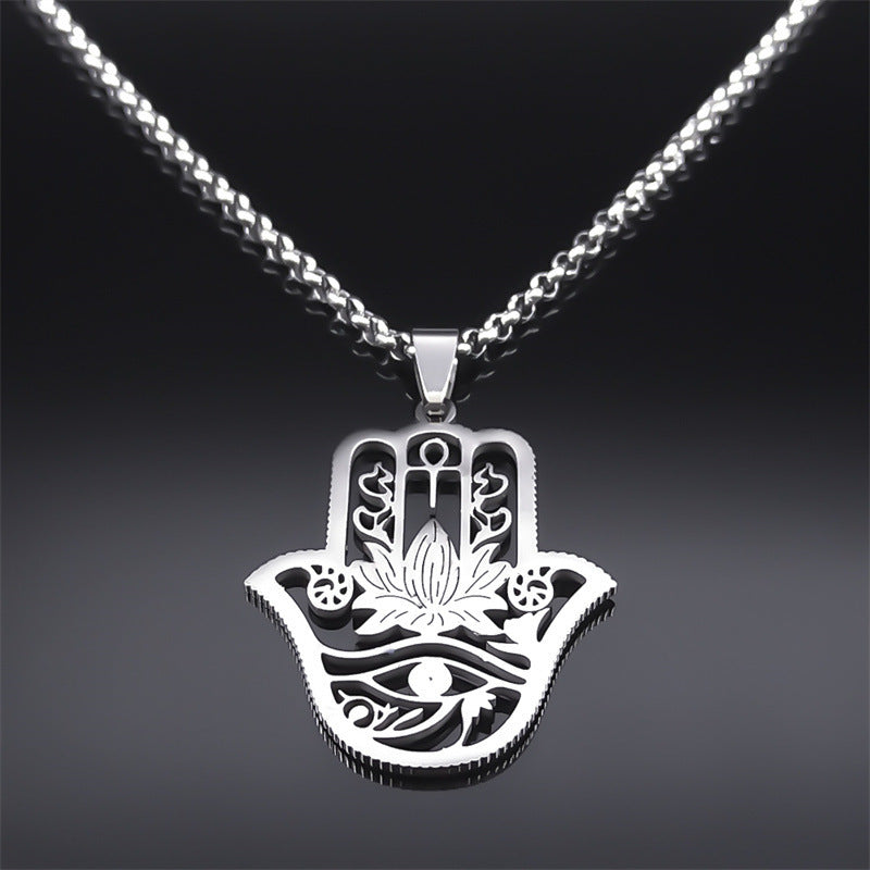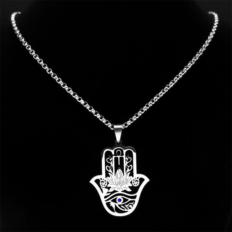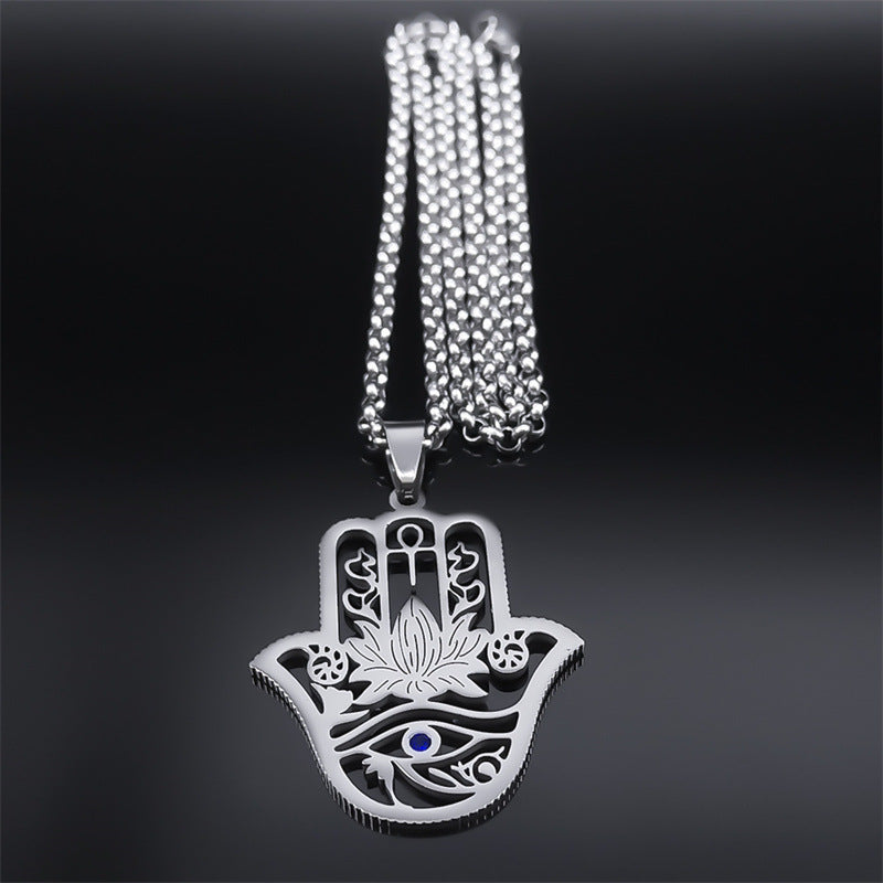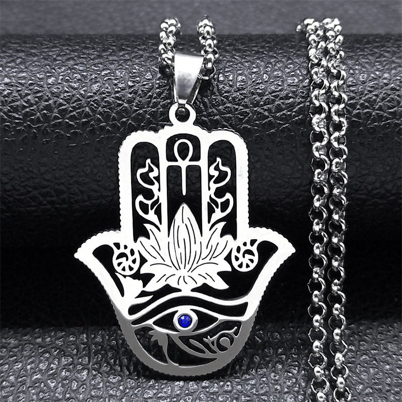 Fatima's Hand Of Hamsa Horus Lotus Eye Necklace Women's Stainless Steel Silver Ankle Key To Life